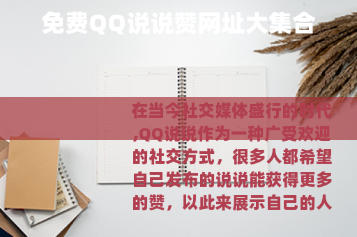 在当今社交媒体盛行的时代,QQ说说作为一种广受欢迎的社交方式,很多人都希望自己发布的说说能获得更多的赞,以此来展示自己的人气和生活状态,而免费QQ说说赞网址的出现,为大家提供了一个轻松获取更多赞的途径。