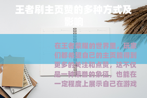 在王者荣耀的世界里,玩家们都希望自己的主页能得到更多的关注和点赞,这不仅是一种荣誉的象征,也能在一定程度上展示自己在游戏中的成就和魅力,王者刷主页赞也因此成为了一个热门的话题,许多玩家都在探索各种方法来增加自己主页的点赞数。