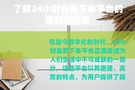在当今数字化的时代,24小时自助下单平台正逐渐成为人们生活中不可或缺的一部分,这些平台以其便捷、高效的特点,为用户提供了随时随地进行交易的可能,极大地改变了我们的消费和生活方式。