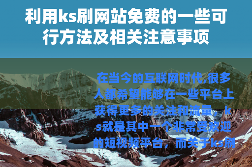 在当今的互联网时代,很多人都希望能够在一些平台上获得更多的关注和流量,ks就是其中一个非常受欢迎的短视频平台,而关于ks刷网站免费的话题,也引起了不少人的兴趣。
