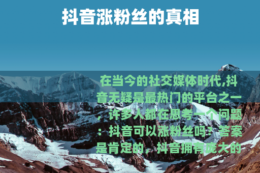 在当今的社交媒体时代,抖音无疑是最热门的平台之一,许多人都在思考一个问题:抖音可以涨粉丝吗?答案是肯定的。
