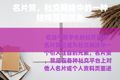 在当今数字化的社交时代,名片赞已成为社交网络中一个引人注目的元素,名片赞,就是在各种社交平台上对他人名片或个人资料页面进行点赞的行为,它看似只是一个小小的操作,但却蕴含着丰富的社交意义和价值。