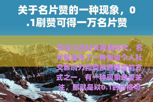 在当今的社交网络时代,名片赞成为了一种衡量个人社交影响力和受欢迎程度的方式之一,有一种现象备受关注,那就是以0.1的价格可以刷到一万名片赞。