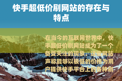 在当今的互联网世界中,快手超低价刷网站成为了一个备受关注的现象,这些网站声称能够以极低的价格为用户提供快手平台上的各种刷量服务,如点赞、评论、粉丝增长等,吸引了众多快手用户的目光。