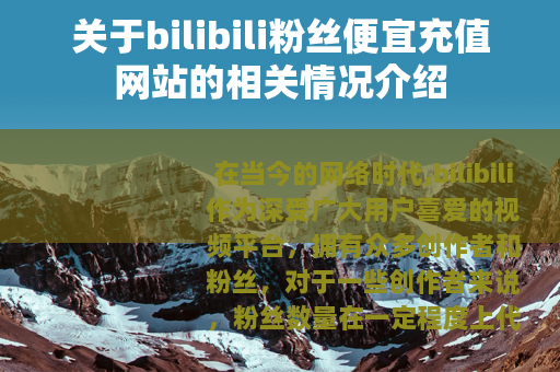在当今的网络时代,bilibili作为深受广大用户喜爱的视频平台,拥有众多创作者和粉丝,对于一些创作者来说,粉丝数量在一定程度上代表着自己的影响力和受欢迎程度,粉丝量的增长成为了他们关注的重点之一,在这样的背景下,一些声称可以提供bilibili粉丝便宜充值服务的网站应运而生。