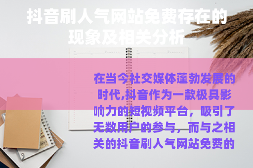 在当今社交媒体蓬勃发展的时代,抖音作为一款极具影响力的短视频平台,吸引了无数用户的参与,而与之相关的抖音刷人气网站免费的话题也逐渐进入了大众的视野。