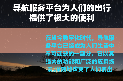 在当今数字化时代,导航服务平台已经成为人们生活中不可或缺的一部分,它以其强大的功能和广泛的应用场景,深刻地改变了人们的出行方式和生活习惯。