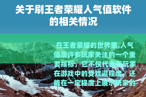 在王者荣耀的世界里,人气值是许多玩家关注的一个重要指标,它不仅代表着玩家在游戏中的受欢迎程度,还能在一定程度上展示玩家的游戏影响力,而随着玩家对人气值的重视,市场上出现了一些所谓的刷王者荣耀人气值软件。
