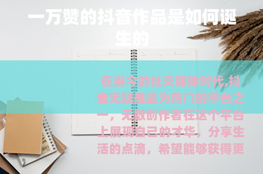 在当今的社交媒体时代,抖音无疑是最为热门的平台之一,无数创作者在这个平台上展现自己的才华,分享生活的点滴,希望能够获得更多的关注和认可,而一万赞,对于许多抖音创作者来说,是一个具有重要意义的里程碑,它代表着作品的受欢迎程度和影响力达到了一个较高的水平,那些能够获得一万赞的抖音作品究竟是如何诞生的呢? 的独特性是关键所在,在抖音这个海量内容的平台上,要想脱颖而出,必须要有与众不同的创意和视角,创作者需要深入挖掘自己的兴趣和特长,找到一个独特的主题或切入点,从而制作出能够吸引用户眼球的作品,有的创作者擅长美食制作,他们会通过独特的烹饪手法、新奇的食材搭配或者有趣的烹饪过程展示,为观众带来全新的美食体验,这样的作品往往容易引发观众的兴趣和点赞欲望。