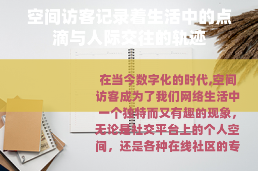 在当今数字化的时代,空间访客成为了我们网络生活中一个独特而又有趣的现象,无论是社交平台上的个人空间,还是各种在线社区的专属区域,空间访客的存在都为我们的虚拟世界增添了一份别样的色彩。