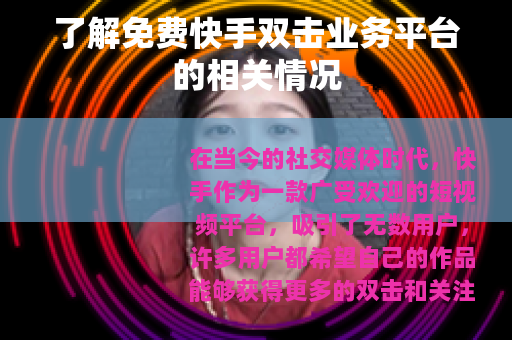 在当今的社交媒体时代,快手作为一款广受欢迎的短视频平台,吸引了无数用户,许多用户都希望自己的作品能够获得更多的双击和关注,从而在平台上获得更高的人气,在这样的需求下,免费快手双击业务平台应运而生。