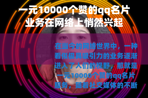 在当今的网络世界中,一种看似极具吸引力的业务逐渐进入了人们的视野,那就是一元10000个赞的qq名片服务,随着社交媒体的不断发展,qq名片的点赞数量成为了许多人关注的焦点,它在一定程度上代表着一个人的社交热度和受欢迎程度。