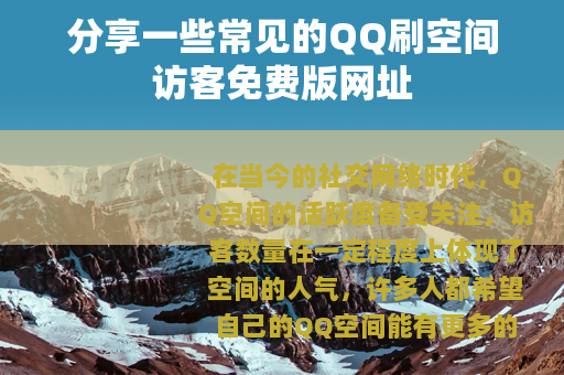 在当今的社交网络时代,QQ空间的活跃度备受关注,访客数量在一定程度上体现了空间的人气,许多人都希望自己的QQ空间能有更多的访客,从而让自己的动态能被更多人看到,分享的生活点滴能得到更多的回应,一些QQ刷空间访客的免费版网址便应运而生,受到了不少人的关注。