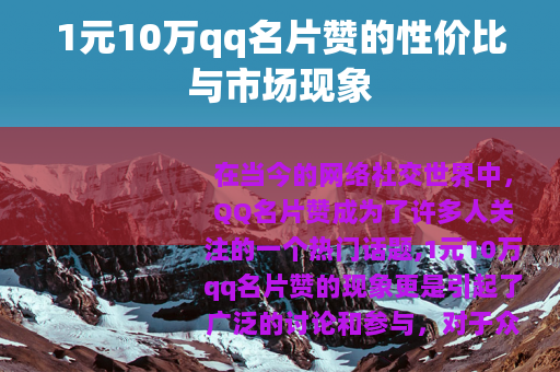 在当今的网络社交世界中,QQ名片赞成为了许多人关注的一个热门话题,1元10万qq名片赞的现象更是引起了广泛的讨论和参与。