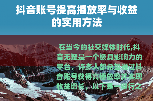抖音账号提高播放率与收益的实用方法