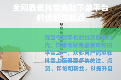 在当今数字化的社交媒体时代,抖音无疑是最受欢迎的平台之一,众多用户渴望在抖音上获得更多的关注、点赞、评论和粉丝,以提升自己的影响力和知名度,而全网最低抖音自助下单平台的出现,为这些用户提供了一种新的途径。