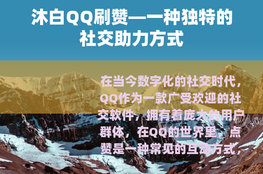 在当今数字化的社交时代,QQ作为一款广受欢迎的社交软件,拥有着庞大的用户群体,在QQ的世界里,点赞是一种常见的互动方式,它代表着认可与喜爱,而沐白QQ刷赞则成为了许多人关注的一个话题。