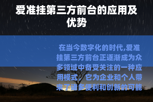 在当今数字化的时代,爱准挂第三方前台正逐渐成为众多领域中备受关注的一种应用模式,它为企业和个人带来了诸多便利和创新的可能性,开启了一个全新的发展篇章。