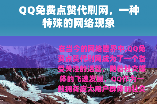 在当今的网络世界中,QQ免费点赞代刷网成为了一个备受关注的话题,随着社交媒体的飞速发展,QQ作为一款拥有庞大用户群体的社交软件,其点赞功能在一定程度上代表着用户的受欢迎程度和社交影响力,而免费点赞代刷网的出现,为许多希望在QQ空间等地方获得更多点赞的用户提供了一种看似便捷的途径。