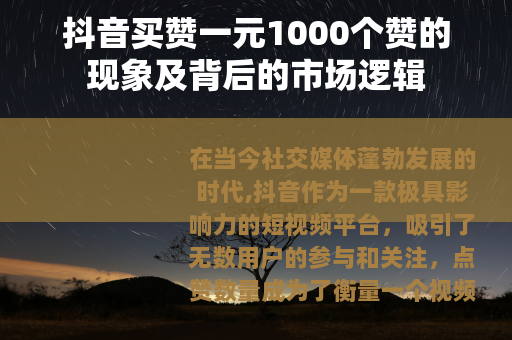 在当今社交媒体蓬勃发展的时代,抖音作为一款极具影响力的短视频平台,吸引了无数用户的参与和关注,点赞数量成为了衡量一个视频受欢迎程度的重要指标之一,而在这个背景下,出现了一种现象,那就是所谓的“抖音买赞一元1000个赞”。