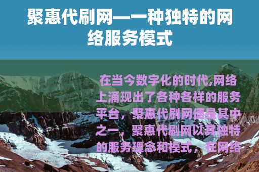 在当今数字化的时代,网络上涌现出了各种各样的服务平台,聚惠代刷网便是其中之一,聚惠代刷网以其独特的服务理念和模式,在网络世界中占据了一席之地。