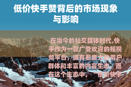 在当今的社交媒体时代,快手作为一款广受欢迎的短视频平台,拥有着庞大的用户群体和丰富的内容生态,而在这个生态中,“低价快手赞”的现象逐渐引起了人们的关注。