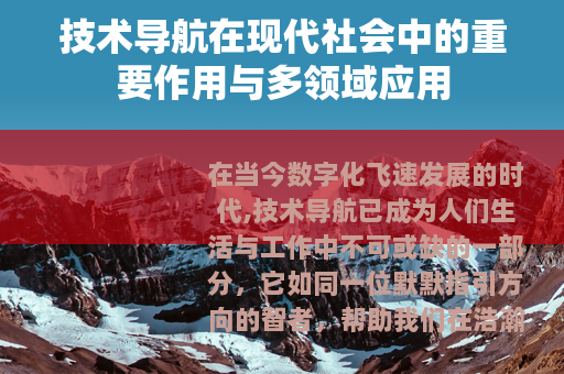 在当今数字化飞速发展的时代,技术导航已成为人们生活与工作中不可或缺的一部分,它如同一位默默指引方向的智者,帮助我们在浩瀚的技术海洋中顺利前行。
