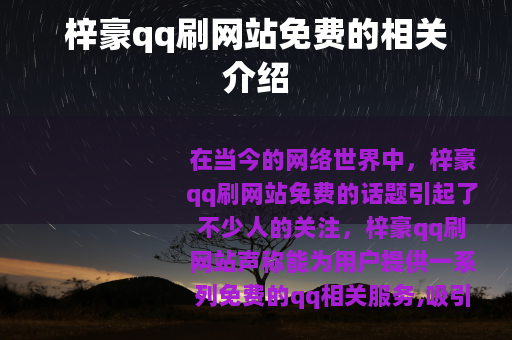 在当今的网络世界中,梓豪qq刷网站免费的话题引起了不少人的关注,梓豪qq刷网站声称能为用户提供一系列免费的qq相关服务,吸引了众多qq用户的目光。
