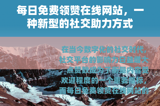 在当今数字化的社交时代,社交平台的影响力日益增大,点赞数成为了衡量内容受欢迎程度的一个重要指标,而每日免费领赞在线网站的出现,为许多渴望在社交平台上获得更多关注和认可的用户提供了一种新的途径。