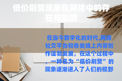 在当今数字化的时代,网络社交平台和各类线上内容创作蓬勃发展,在这个过程中,一种名为“低价刷赞”的现象逐渐进入了人们的视野。