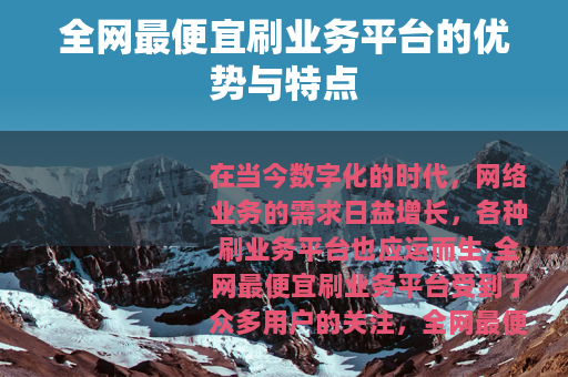 在当今数字化的时代,网络业务的需求日益增长,各种刷业务平台也应运而生,全网最便宜刷业务平台受到了众多用户的关注。