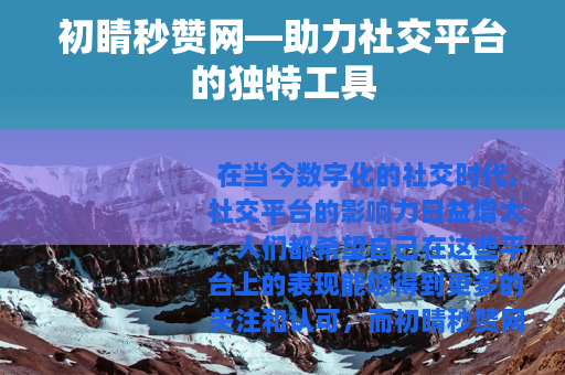 在当今数字化的社交时代,社交平台的影响力日益增大,人们都希望自己在这些平台上的表现能够得到更多的关注和认可,而初睛秒赞网,正是在这样的背景下应运而生的一个独特存在。