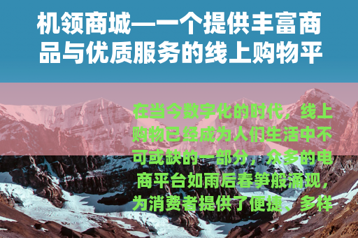 在当今数字化的时代,线上购物已经成为人们生活中不可或缺的一部分,众多的电商平台如雨后春笋般涌现,为消费者提供了便捷、多样的购物选择,机领商城以其独特的优势在众多平台中脱颖而出,成为了许多消费者喜爱的购物之地。