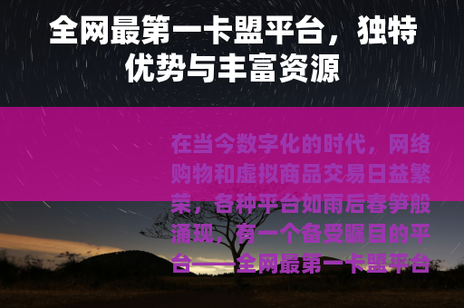 在当今数字化的时代,网络购物和虚拟商品交易日益繁荣,各种平台如雨后春笋般涌现,有一个备受瞩目的平台——全网最第一卡盟平台,以其卓越的服务和丰富的资源在众多同类平台中脱颖而出。
