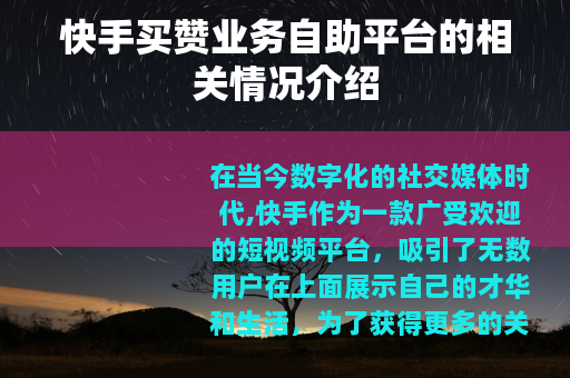 在当今数字化的社交媒体时代,快手作为一款广受欢迎的短视频平台,吸引了无数用户在上面展示自己的才华和生活,为了获得更多的关注和认可,许多用户都希望自己的作品能够有较高的点赞量,在这样的需求下,快手买赞业务自助平台应运而生。