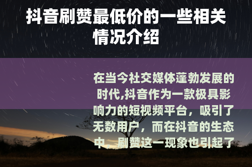 在当今社交媒体蓬勃发展的时代,抖音作为一款极具影响力的短视频平台,吸引了无数用户,而在抖音的生态中,刷赞这一现象也引起了不少人的关注,其中抖音刷赞最低价更是成为了一些人热议的话题。
