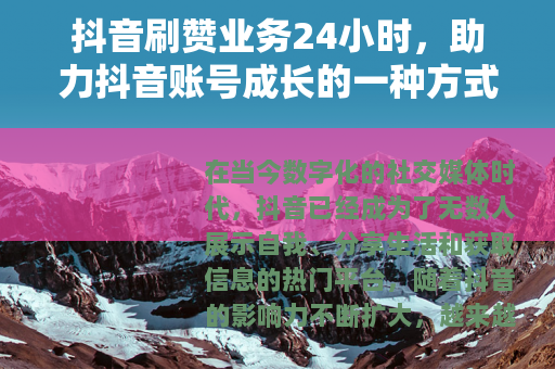 在当今数字化的社交媒体时代,抖音已经成为了无数人展示自我、分享生活和获取信息的热门平台,随着抖音的影响力不断扩大,越来越多的用户渴望在这个平台上获得更多的关注和点赞,从而提升自己的知名度和影响力,而抖音刷赞业务24小时的出现,为这些用户提供了一种可能的途径。