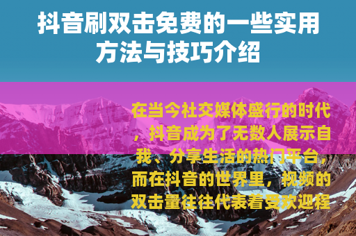 在当今社交媒体盛行的时代,抖音成为了无数人展示自我、分享生活的热门平台,而在抖音的世界里,视频的双击量往往代表着受欢迎程度和影响力,许多用户都希望能够提升自己作品的双击量,从而获得更多的关注和认可,抖音刷双击免费的方法就备受关注。