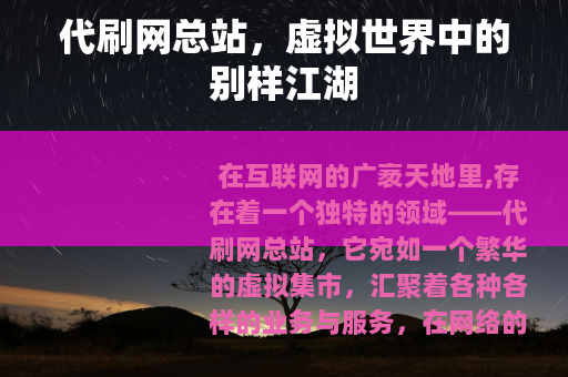 在互联网的广袤天地里,存在着一个独特的领域——代刷网总站,它宛如一个繁华的虚拟集市,汇聚着各种各样的业务与服务,在网络的世界中散发着独特的魅力。