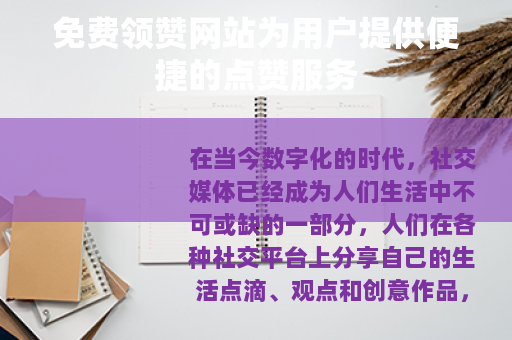 在当今数字化的时代,社交媒体已经成为人们生活中不可或缺的一部分,人们在各种社交平台上分享自己的生活点滴、观点和创意作品,希望能够得到他人的关注和认可,而点赞则是一种最直接的表达方式之一,在这样的背景下,领赞网站免费应运而生,为广大用户提供了一个轻松获取点赞的途径。