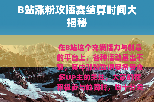 对于许多参与其中的创作者来说,了解结算时间至关重要,这不仅关系到他们在比赛中的成绩和收益,也影响着他们后续的创作规划和动力,关于B站涨粉攻擂赛的结算时间,平台并没有在一个非常显眼的位置进行明确说明,这就导致很多UP主对此感到困惑。