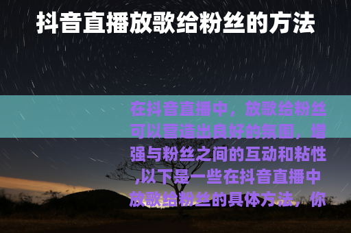 在抖音直播中,放歌给粉丝可以营造出良好的氛围,增强与粉丝之间的互动和粘性,以下是一些在抖音直播中放歌给粉丝的具体方法。