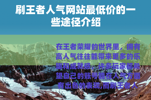 在王者荣耀的世界里,拥有高人气往往能带来更多的乐趣和成就感,许多玩家都希望自己的账号能在人气方面有出色的表现,而刷王者人气网站最低价的需求也随之产生。