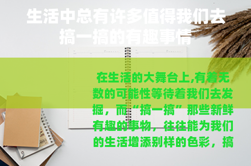 在生活的大舞台上,有着无数的可能性等待着我们去发掘,而“搞一搞”那些新鲜有趣的事物,往往能为我们的生活增添别样的色彩。