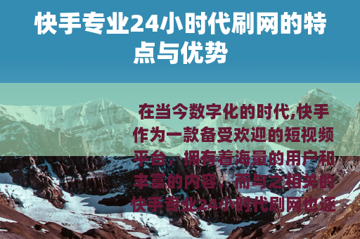 在当今数字化的时代,快手作为一款备受欢迎的短视频平台,拥有着海量的用户和丰富的内容,而与之相关的快手专业24小时代刷网也逐渐进入了人们的视野。