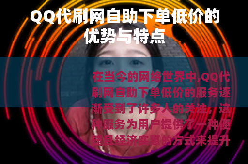 在当今的网络世界中,QQ代刷网自助下单低价的服务逐渐受到了许多人的关注,这种服务为用户提供了一种便捷且经济实惠的方式来提升自己在QQ相关领域的各种数据。