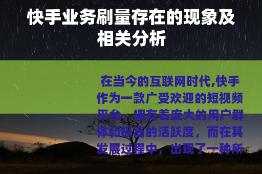 在当今的互联网时代,快手作为一款广受欢迎的短视频平台,拥有着庞大的用户群体和极高的活跃度,而在其发展过程中,出现了一种所谓的低价刷快手业务的现象。