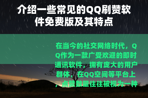 我们要明确的是,市面上存在着各种各样的QQ刷赞软件免费版,它们的功能和特点各有不同,一些软件声称可以快速为用户的QQ说说、日志、相册等内容增加大量点赞数,这些软件通常具有操作简单的特点,用户只需按照软件的提示进行几步简单的设置,就可以开启刷赞之旅。