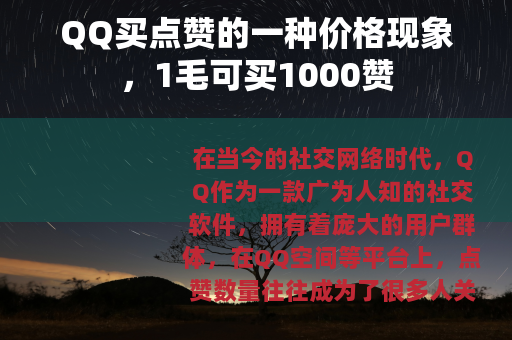 QQ买点赞1毛1000赞的现象是社交网络发展过程中的一个特殊现象,它既有其存在的市场需求和合理性,也存在着一些需要关注和解决的问题,只有通过用户、商家和平台运营者的共同努力,才能让QQ空间等社交平台在未来的发展中更加健康、有序,为用户带来更好的社交体验。