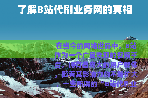 在当今的网络世界中,B站作为一个广受欢迎的视频平台,拥有着庞大的用户群体,随着其影响力的不断扩大,一些所谓的“B站代刷业务网”也悄然出现。